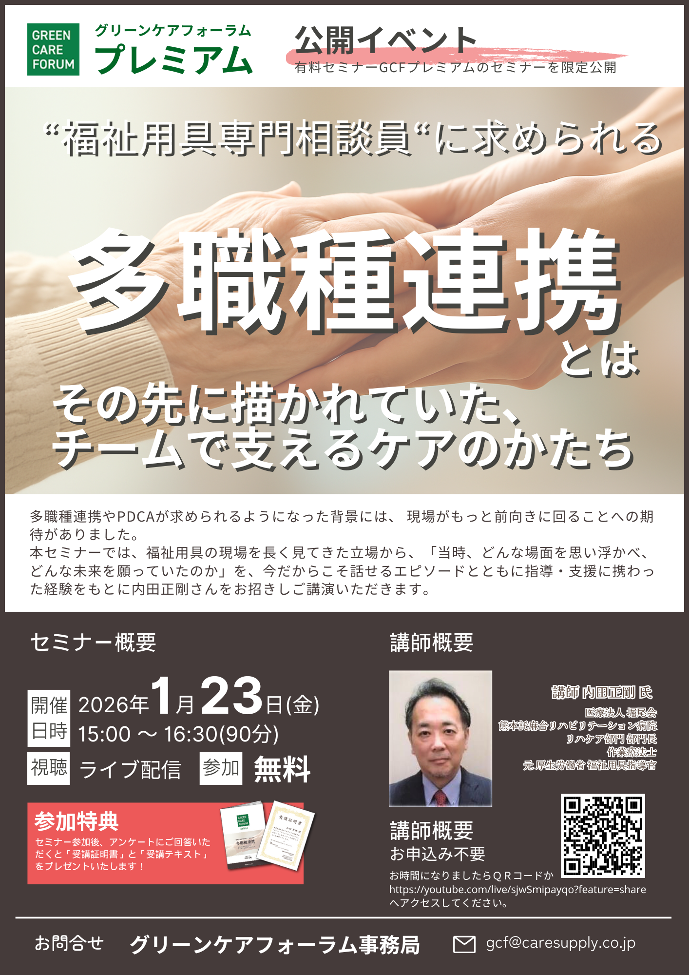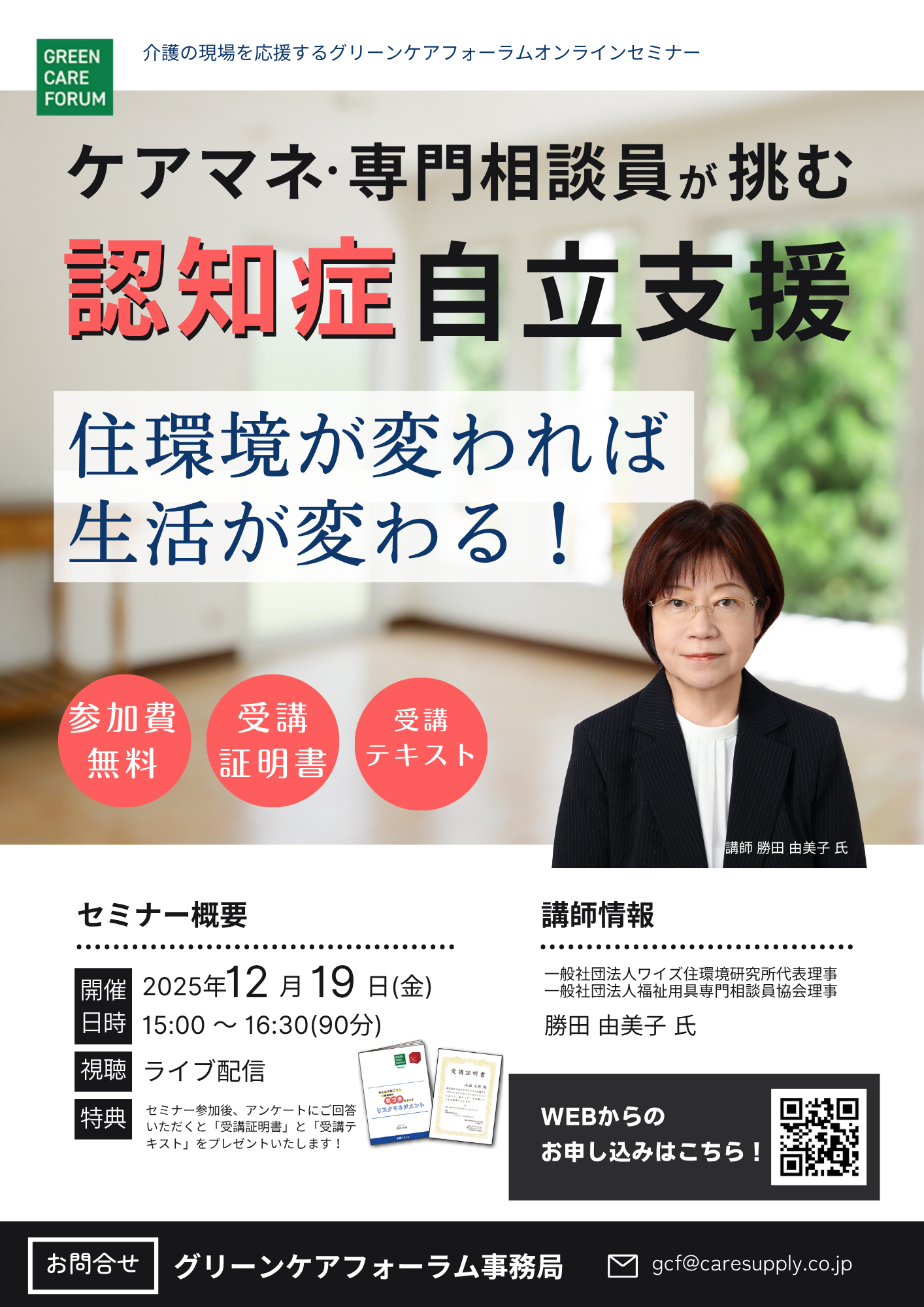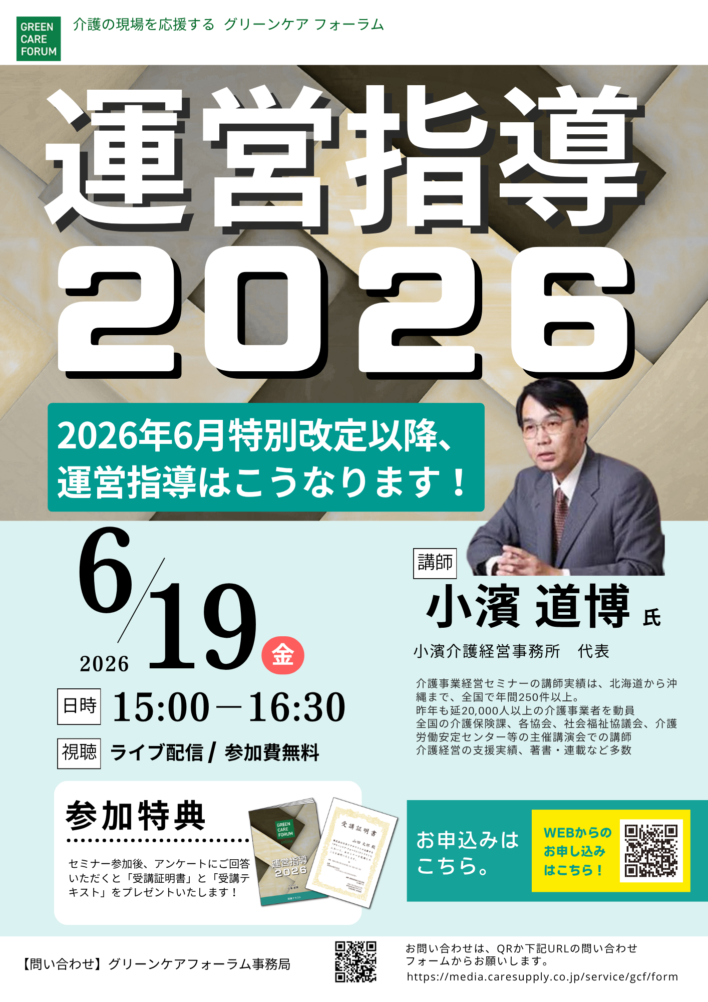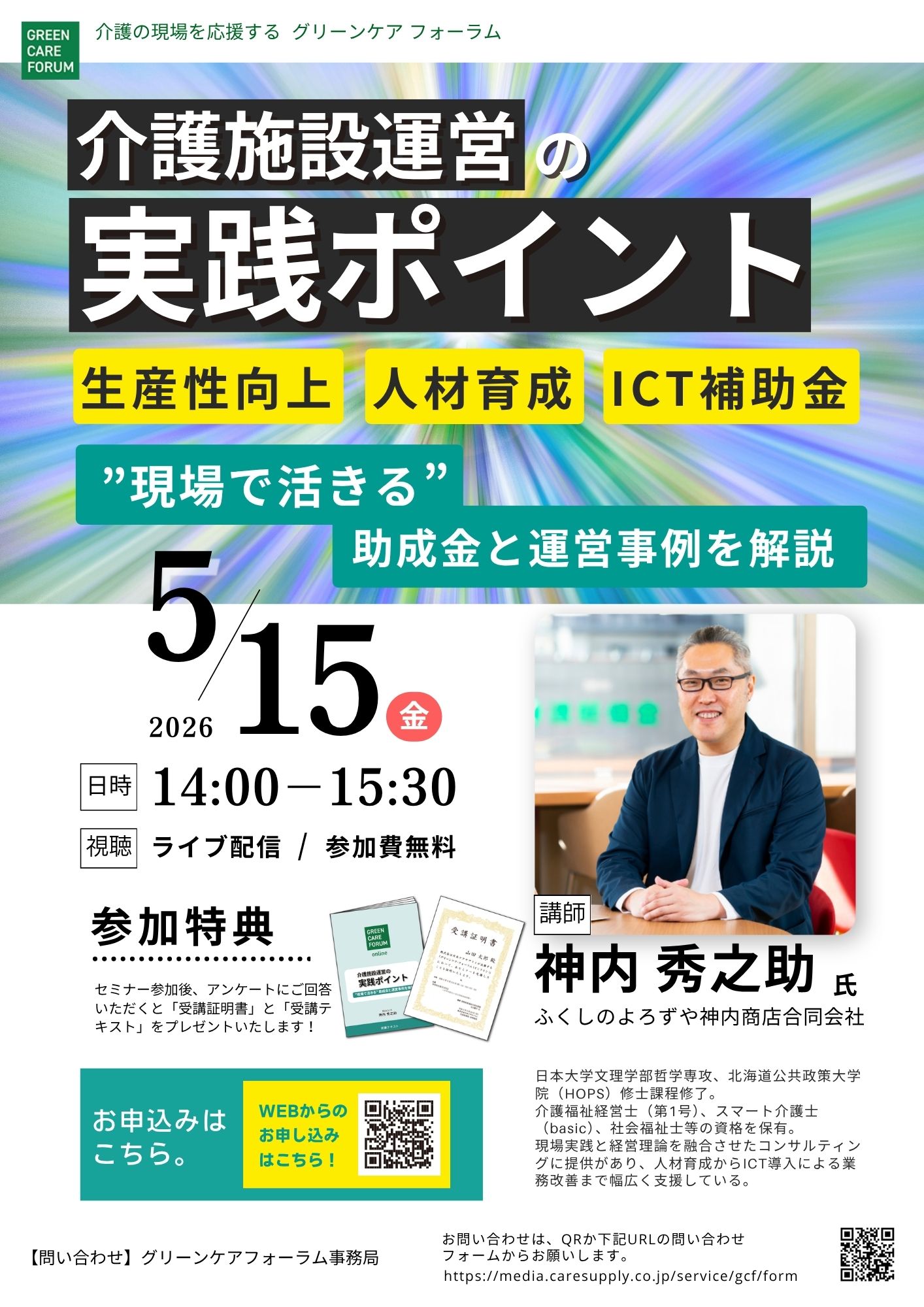 ケアマネジャー、福祉用具貸与事業者、介護施設、デイサービスなど介護に係わるみなさま向けに有益な情報を提供するセミナーを開催しております。介護事業者として抑えておくべき最新情報や定期的に改定になる介護制度の解説などを業界の著名人を講師にお迎えして分かりやすくお伝えいたします。最新情報をキャッチアップでき、参加費は無料、参加しやすいオンライン開催、セミナーの受講を証明する証明書の発行、セミナーテキストの配布など、参加しやすく、メリットの多い内容となっております。