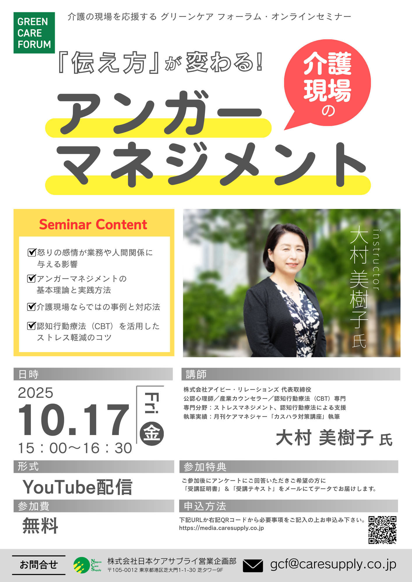 【2025年10月17日】「伝え方」が変わる!介護現場のアンガーマネジメント(グリーンケア フォーラム ・オンライン)